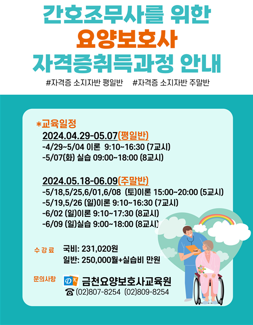 | 간호조무사 자격증 소지자 4월평일반/ 5월주말반 개강일정 |