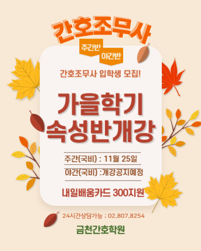 | 간호조무사 1차 정원마감으로 2차 속성반을 모집합니다. |